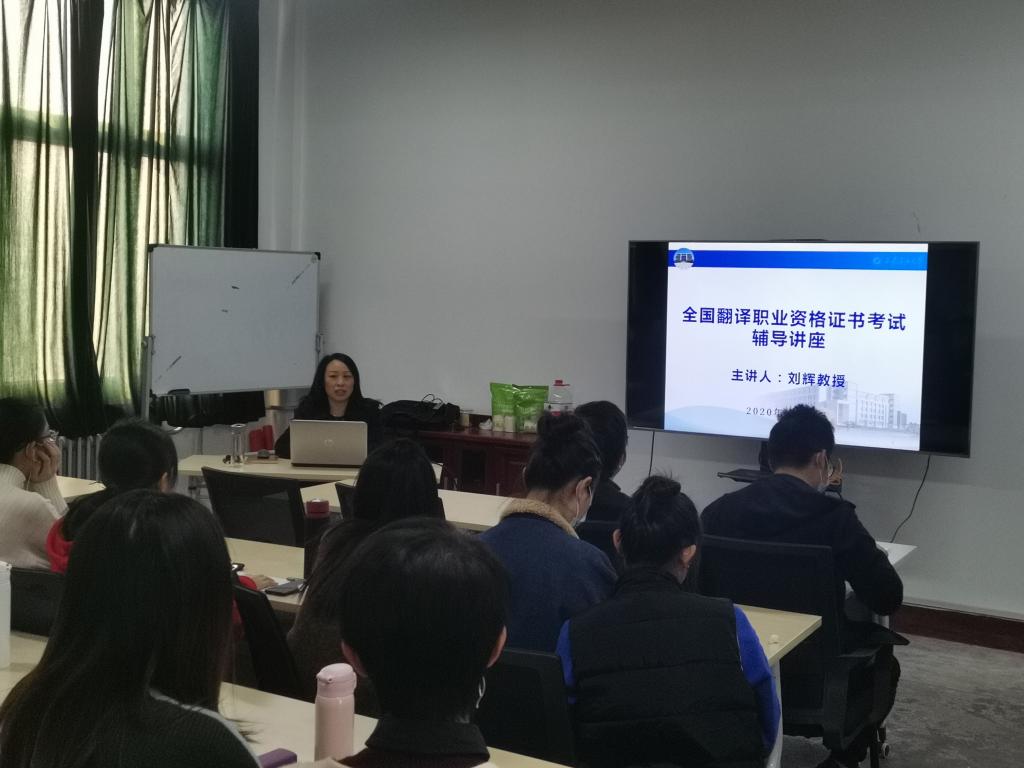11月10日晚7:30分,刘辉教授将在鄠邑校区石工地科楼115为2020级翻译硕士研究生做全国翻译资格证书考试辅导讲座。(图:王潇/文:杨萌)