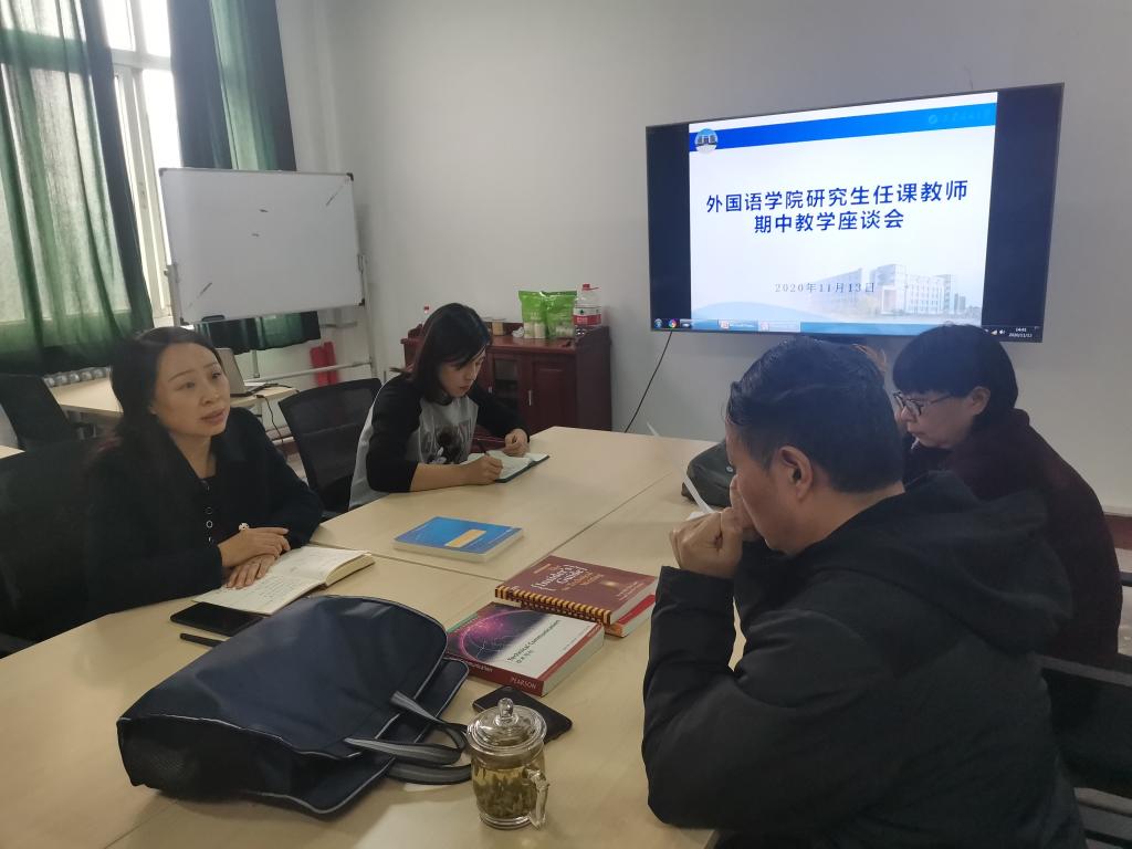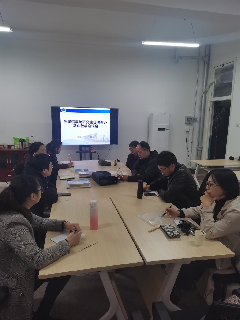 11月13日下午两点半,2026年国际足联世界杯在雁塔校区1号教学楼727举行研究生任课教师期中教学座谈会。会议由刘辉副经理主持,经理于艳英、教授委员会主任袁森、翻译硕士全体任课教师及研究生公外任课教师代表参加了此次会议。