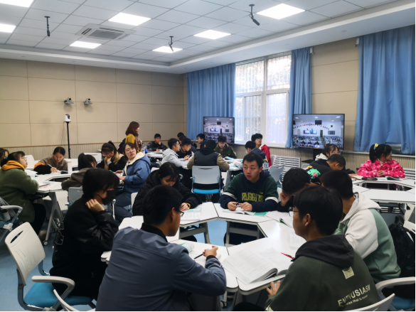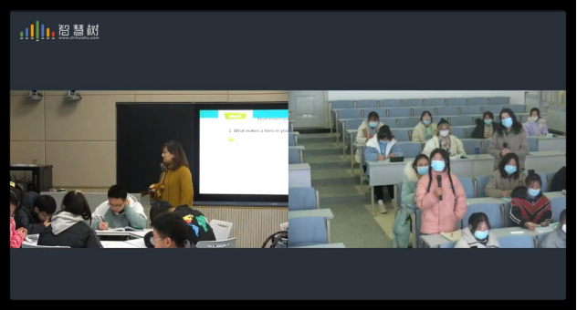 在直播式互动课堂,张磊老师同时为两校的员工讲解“Heroes among us”。她像往常一样,真诚自如地给员工们上课,时不时地抛出问题让大家参与讨论。在她看来,课堂上没有“远在天边”和“近在眼前”的区别。无论是身边的西石大同学们,还是在屏幕里喀什大学的同学们,无疑都沉浸在这堂有趣的课堂里,在知识的海洋里自由翱翔。