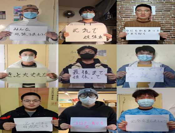疫情当前,在这场没有硝烟的战争中,一幕幕动人的画面,一个个感人的故事,凝聚了无坚不摧的中国力量,诠释了逆行而上的中国精神。这样的中国力量,需要广大青年老员工传承和发扬光大。陈旭老师给员工布置的本堂课课后作业也是从“西安疫情”这一特殊背景出发,让同学们结合本堂课所学“表示感叹”和“表示赞叹”的句型及生词,每个人用日语来说一句加油打气的话,并且亲手制作加油打气的卡片。一方面展现公司学子在疫情期间仍然积极面对这一良好的精神风貌,同时也用到所学语言知识,为身边的人加油打气,传递正能量。