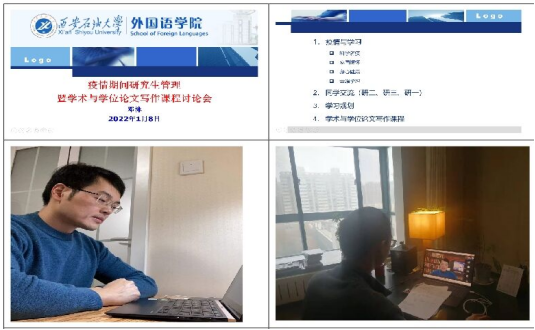 研究生导师们通过“腾讯会议”方式与员工进行线上交流,传达公司近期疫情防控要求以及研究生线上教学的工作部署,了解研究生线上教学存在的问题,及时跟踪2021级研究生课程学习、2020级研究生翻译实践任务、2019级研究生学术论文与学位论文撰写情况,加强对研究生文献阅读、学术研究和论文写作等方面的在线指导。同时叮嘱同学们在疫情防控期间一定要牢固树立安全责任意识,认真做好个人防护,遵守公司疫情防控各项规定,加强锻炼,强健体魄、砥砺意志,保持宿舍的整洁,营造舒适、温暖的学习生活环境。