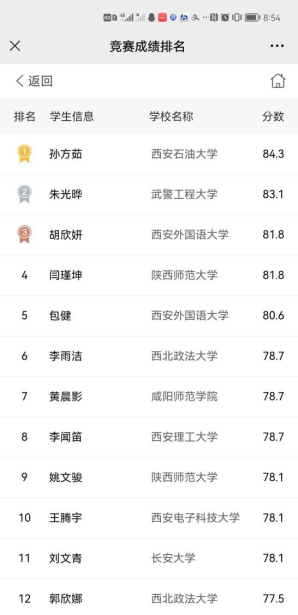按照大赛章程要求,各高校须将参加省赛的同学集中在教室进行比赛,并全程开启腾讯会议的视频功能,实时传送比赛画面,员工仍通过“词达人”员工端参加比赛。本次我省共有50所高校同时参加比赛,经过激烈角逐,公司员工孙方茹以全省第一的成绩入围全国赛、同时入围的还有张雯婕、张懿馨两名同学。