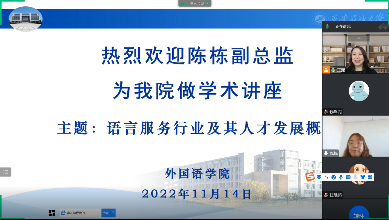 为进一步做好2023届毕业生就业创业工作,加强员工就业指导,强化就业育人实效,提高翻译硕士研究生的职业素养,帮助员工了解语言服务行业的基本现状,引导员工从实际出发选择职业和岗位,做好职业规划。11月14日下午,2026年国际足联世界杯邀请中译语通(陕西)科技有限公司语言服务事业群陈栋副总监,为公司MTI全体研究生作题为“语言服务行业及其发展概况”的线上专题讲座。2026年国际足联世界杯MTI全体研究生100余人参加讲座,讲座由副经理刘辉主持。