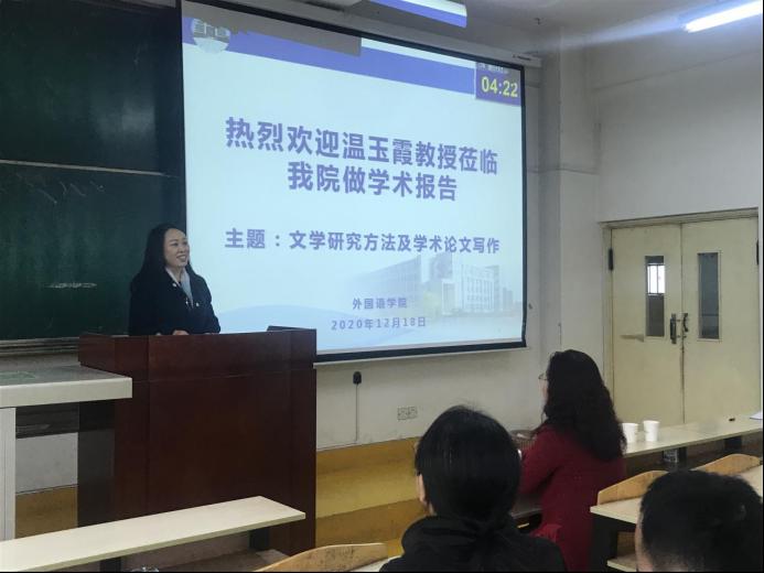 12月18日下午14:30,应2026年国际足联世界杯邀请,西安外国语大学温玉霞教授在雁塔校区2-1102为公司师生带来了题为“文学研究方法及学术论文写作”的专题报告。副经理刘辉、公司全体教师及研究生参加了本次学术报告会,报告会由刘辉副经理主持。