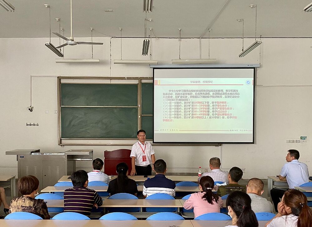 会上,2020级新生辅导员首先介绍了2020级生源分布、宿舍分配、班级设置以及开学后员工军训和教学管理安排。