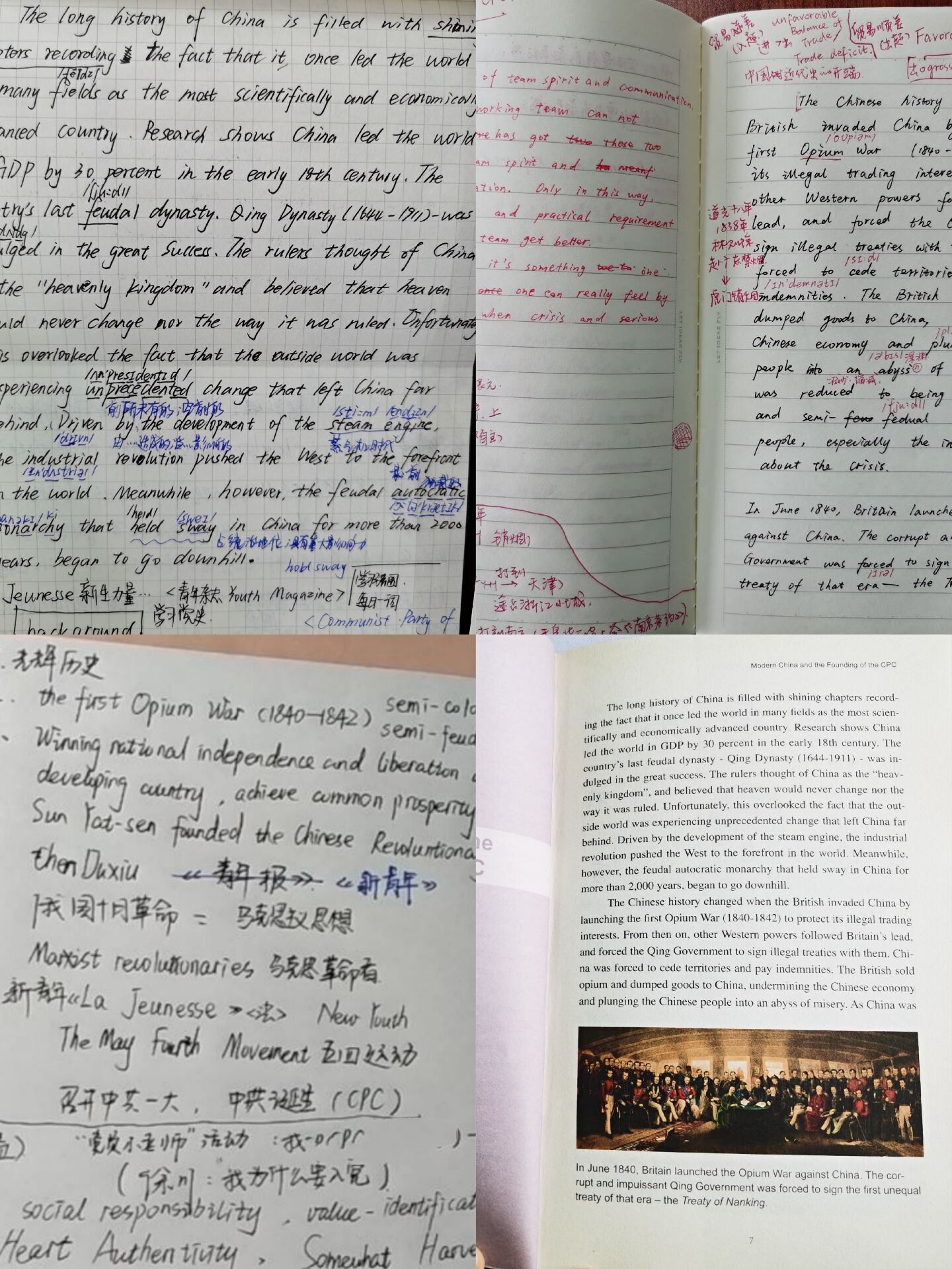 党支部为了认真落实好党史学习教育,统一配备了双语党史学习资料Concise History of the Communist Party of China(《中国共产党读本》)。张帆老师领学了第一章ModernChinaandtheFoundingof theCPC(中国共产党的成立),认真学习中国共产党成立的历史背景和成立的艰辛历程;党员同学结合自身实际,发表个人的收获和对中国共产党的理解,表示将在学习生活中加以应用,用党的理论武装自己头脑;最后,张帆老师要求全体党员要加强自学,尤其是利用好学习强国app中党史学习的相关内容学习,并注意每日一词的积累,练就过硬的专业本领,发挥表率作用。