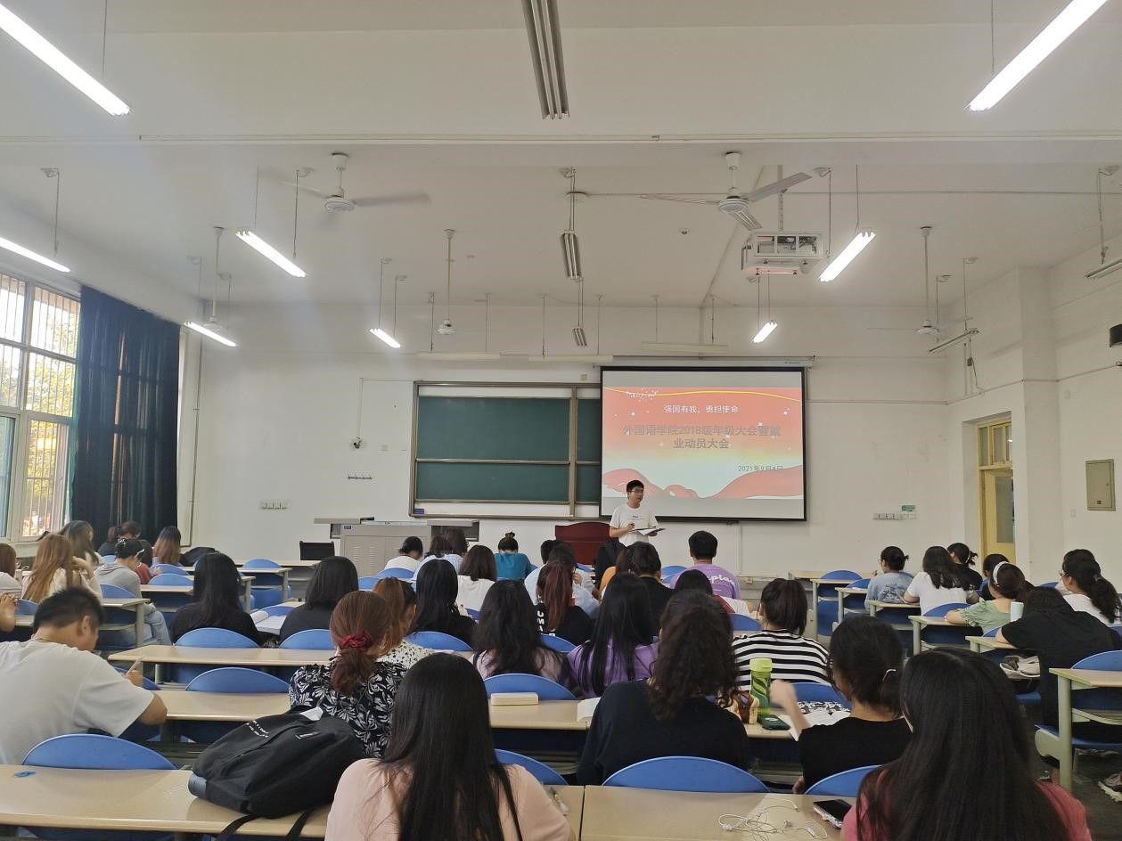 2018级辅导员陈浩就2018级本科生日常管理进行了强调,要求在校期间严格遵守校纪校规,服从疫情常态化下的管理制度。同时,希望同学们要树立正确的就业观,坚决克服急功近利思想、浮躁情绪,关注就业信息,抓住一切就业机会;要积极参加招聘会,主动联系就业单位、寻找就业机会;要在思想上重视,行动上自觉,多做努力,早日就业,为家庭、为社会、为国家贡献青春力量。