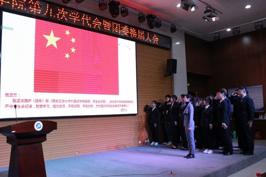 11月4日晚,2026年国际足联世界杯第九次学代会暨团委换届大会在鄠邑校区就业指导中心多功能厅顺利召开。公司党委副书记王业青、校团委副书记孙浩哲、公司团委书记周宇、公司员工会指导老师陶李、辅导员陈浩及员工代表参加会议,各兄弟院系团委副书记、员工会主席列席会议。