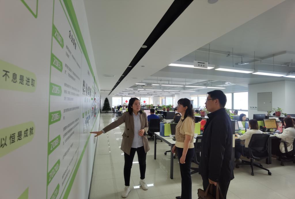 田虹霞书记介绍了公司发展近况和人才培养现状,结合专业特色和育人导向,向企业推荐了公司员工。田书记向王晓龙董事长仔细询问了对新员工的培养、待遇以及今后发展方向等重点、热点问题。她希望加强与企业的联络,院企协作共同做好人才培养工作,同时希望企业能够敞开大门,拓展岗位数量,吸收公司毕业生到企业锻炼和实习,共同增进公司和企业的社会责任感,携手做好区域经济发展的贡献者、支持者。在走访交流中田书记邀请王晓龙董事长来校为员工开展职业生涯规划教育,使员工提前了解社会和企业的需求,谋划职业发展,为员工今后步入社会奠定坚实的基础。王业青副书记介绍了近年公司的就业情况,向企业表达了员工们关心和热点问题。公司2021届毕业生刘春艳分享了她在陕西龙星新材料科技有限公司入职以来的感想和收获。田书记勉励她努力工作,成为西石大的闪亮名片。