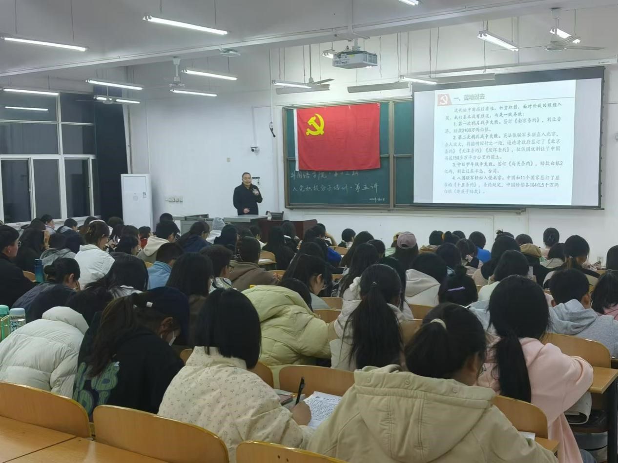 齐仲锋以“从百年沧桑到大国崛起”为题,从苦难过去、艰难探索、根源剖析、辉煌成就、愿景对比五个方面,阐述了近代中国的发展历程以及中华民族救亡图存、救国救民的真理和路径,重点讲述了在中国共产党的正确领导下,近代中国所发生的重要转折以及取得的辉煌成就。强调了中国崛起的根本出路是中国特色社会主义道路,中国特色社会主义的本质特征是中国共产党的领导,正因中国共产党的诞生,全国各族人民才能紧密团结在中国共产党的领导下,形成强大的革命和建设洪流,推动中国迅速崛起并逐步走入世界政治舞台的中央。他希望全体入党积极分子能够持续而深刻地学习党的基本知识,牢固树立共产主义远大理想和中国特色社会主义坚定信念,增强“四个意识”,坚定“四个自信”,做到“两个维护”,不断在实现中国式现代化的征程上书写青春华章。