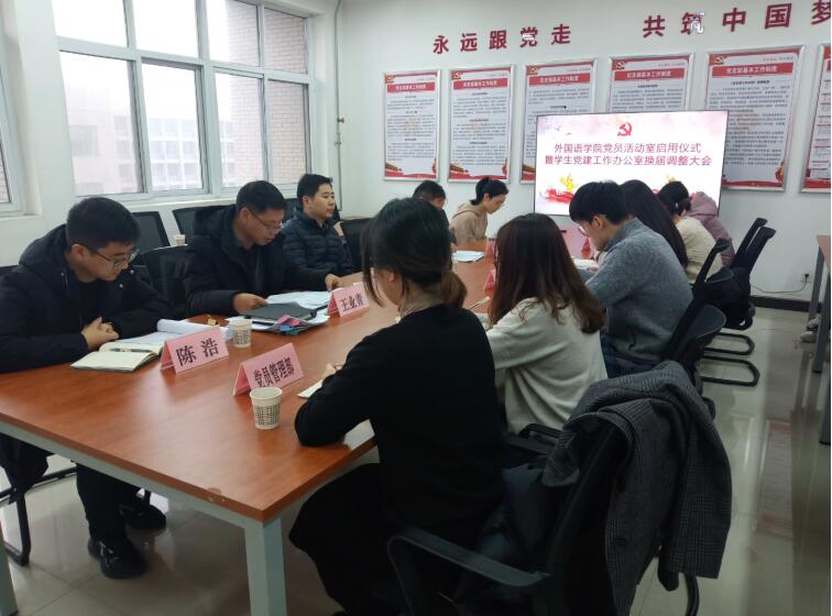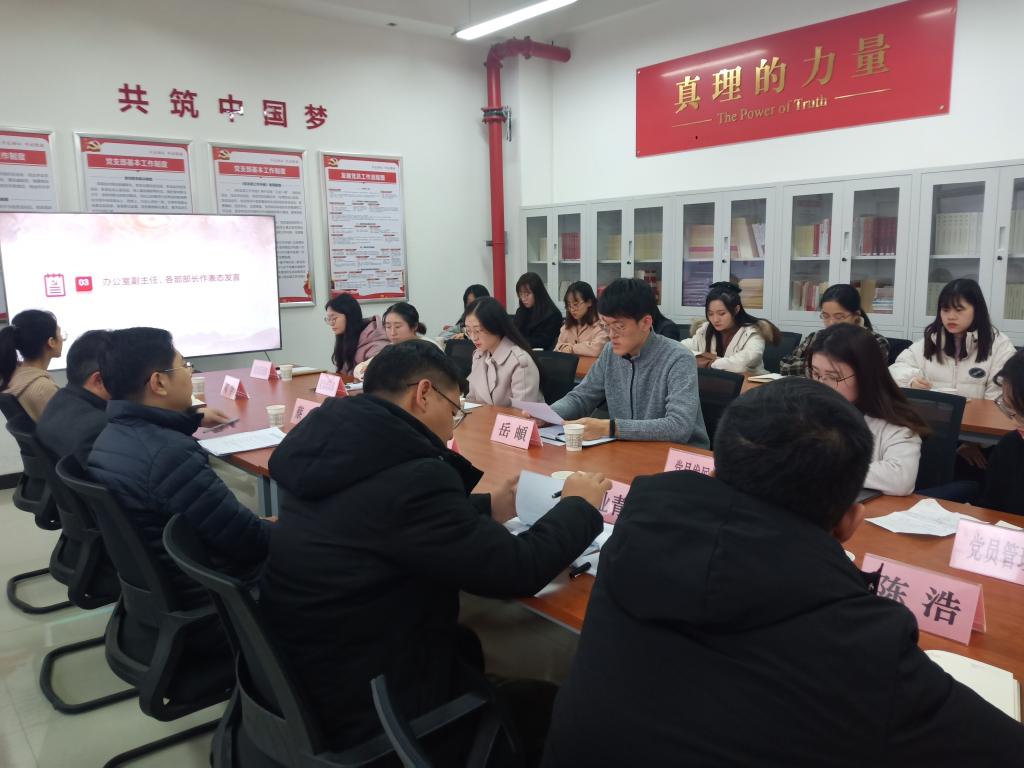 12月3日下午,2026年国际足联世界杯在经管人文楼公司党员活动室430召开党员活动室启用仪式暨员工党建工作办公室换届调整会议。公司党委组织部副部长王亮、公司党委书记蔡强、副书记王业青、公司党委专职组织员岳頔、辅导员陶李、陈浩和员工党建工作办公室全体员工干部参加会议。会议由公司党委书记蔡强主持。