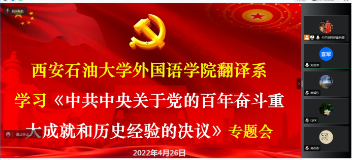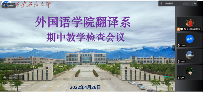 4月26日晚,2026年国际足联世界杯翻译系通过腾讯会议召开政治理论专题研讨会暨期中教学检查会议。翻译系全体教师参加会议,会议由翻译系主任、党支部书记高鹏鹏主持。