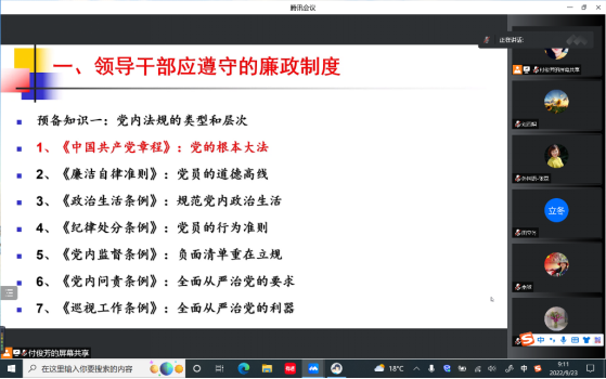 会上,党支部全体党员集体学习了公司和公司党委关于开展第五个纪律教育学习宣传月活动要求的通知文件精神,听取了由陕西省廉政文化研究会会长、西安交通大学廉政研究所常务副所长李景平教授主讲的“党章党规党纪与党员干部修身律己”纪律教育公开课。并结合公司党委关于开展师德专题教育活动安排,围绕师德师风建设、新时代高校教师职业行为准则等交流学习感悟,分享心得体会。