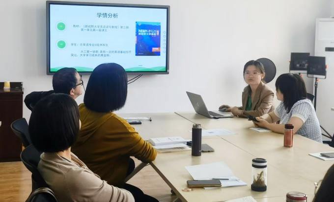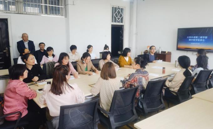 会议对大学英语教学工作和课程思政工作进行了充分研讨。教学部全体老师对本学期以来的大学英语教学工作进行了详细反馈,教学部主任彭健、副主任武绒就本学期期中教学检查工作事项进行了梳理,并对后续各项工作的落实提出要求。王媛展示并分享了参加公司和公司课程思政大练兵讲课比赛的过程与经验,与会老师针对课程思政教学设计和教学方法进行了充分讨论。大家一致表示,将紧密围绕教学科研中心工作,聚焦学习贯彻习近平新时代中国特色社会主义思想主题教育,扎实开展理论学习,认真做好新一轮本科公司产品审核评估各项工作。(图/文:陈君均;审核:田虹霞)
