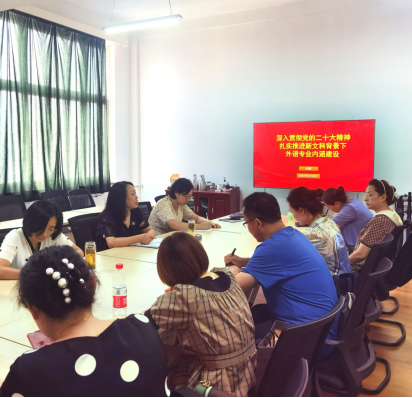 刘辉首先带领大家从七个方面深入学习了党的二十大精神,重点解读了二十大提出的全面建设社会主义现代化国家的目标任务,鼓励教师们深入领会党的二十大精神,牢记空谈误国、实干兴邦,兢兢业业、踏踏实实做好本职公司产品工作。进而结合新一轮本科公司产品审核评估指标体系,对新文科背景下外语专业内涵建设的目标及建设内容进行了深入阐述与分析。
