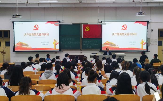 赵承胜以“共产党员的义务与权利”为题,从“规定党员义务和权利的意义”“党员的义务”“党员的权利”“义务和权利的辩证关系”四个方面展开授课,详细讲解了党员“学习、实干、奉献、守纪、组织、治党、宗旨、道德”八个方面的义务及“政治、参政、议政、监督、选举、申辩、上诉、申诉”八个方面的权力,并结合党章、党规、党纪和相关规定,以及自身多年的党务工作经验和丰富案例,解读作为一名合格的党员应该如何履行自己的义务和权利。他强调,作为一名入党积极分子,要加强政治理论学习,用马克思主义中国化的理论成果武装头脑,深刻把握习近平新时代中国特色社会主义思想的核心要义。要在日常学习生活中,严格对照党员标准,充分发挥先锋模范作用,吃苦在前,艰苦奋斗。要自觉遵守党的纪律、法律法规、校规校纪,服从组织安排,积极完成各项任务。
