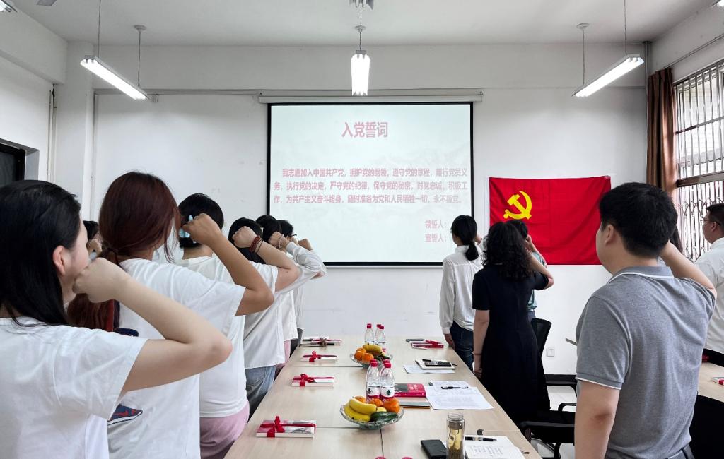 王业青带领全体党员面向党旗,重温入党誓词。希望同学们:一是率先垂范,发挥关键少数的作用,共同营造文明和谐有序毕业离校氛围;二是坚持奋斗,发挥共产党员先锋模范作用,努力实现自己的人生价值;三是心怀感恩,厚植知校爱校荣校情怀,毕业后持续关心支持公司的发展。