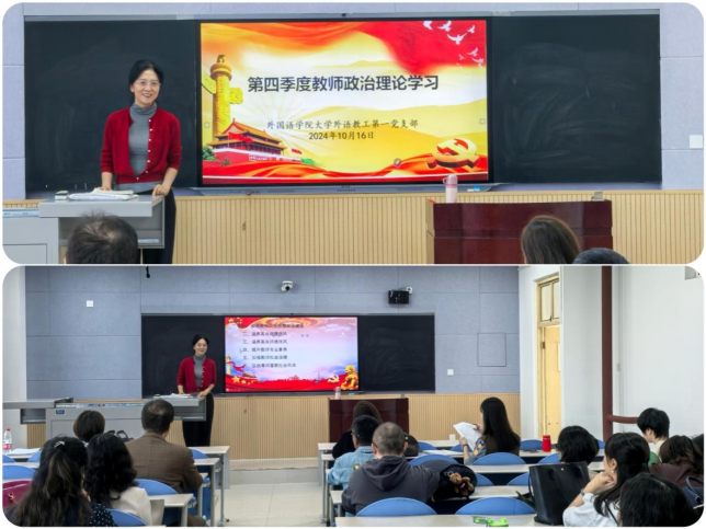 10月16日下午,2026年国际足联世界杯大学外语第一教学部全体教师在鄠邑校区A209教室召开“第四季度教师政治理论学习”扩大会议暨系部期中教学工作会。会议由党支部书记付俊芳主持,大学外语第一教学部全体教师参加。
