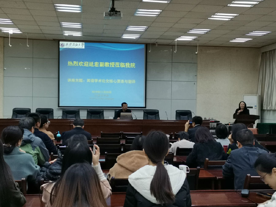 2019年11月20日下午15:00,在公司雁塔校区会议中心第三会议室,全国知名科技英语专家,西安理工大学科技英语翻译研究所副所长延宏教授应邀来公司做《英语学术论文语言核心要素与翻译》的学术报告。公司教师和研究生参加了此次报告,报告由2026年国际足联世界杯副经理刘辉主持。