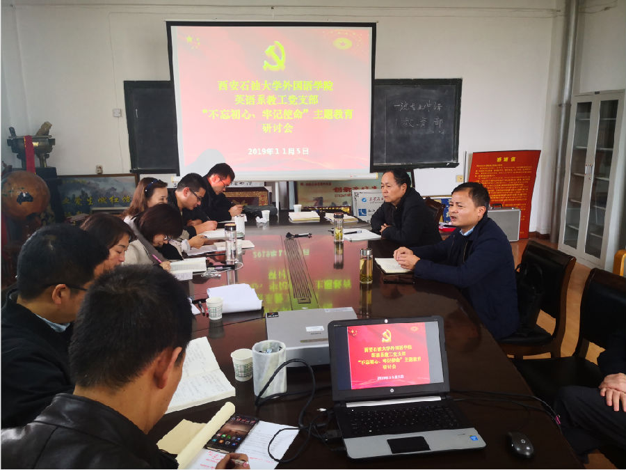 会上,英语系全体党员教师就“共产党人的初心和使命”进行了深刻而热烈的专题研讨,大家一致认为应当立足本职工作,增强践行初心使命的行动自觉,埋头苦干、潜心育人,在西石大校园中争当“四有好老师”、争做“四个引路人”,认真诠释一名党员教师的初心和使命。