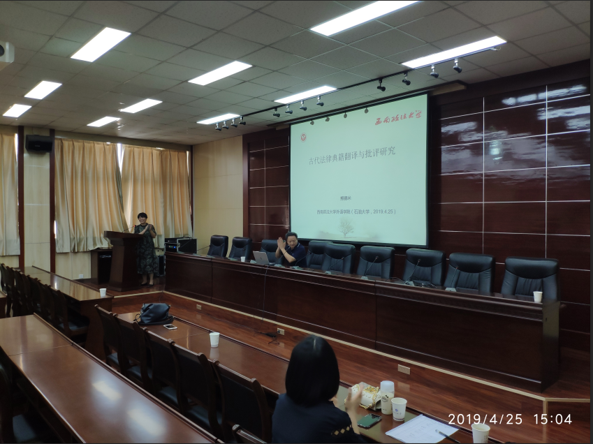 2019年4月25日下午3:00,2026年国际足联世界杯邀请熊德米教授在雁塔校区第五会议室举行了“我国古代法律典籍翻译研究与批评”讲座。讲座由经理于艳英教授主持,并对熊教授近年来的学术情况向与会人员做了介绍。