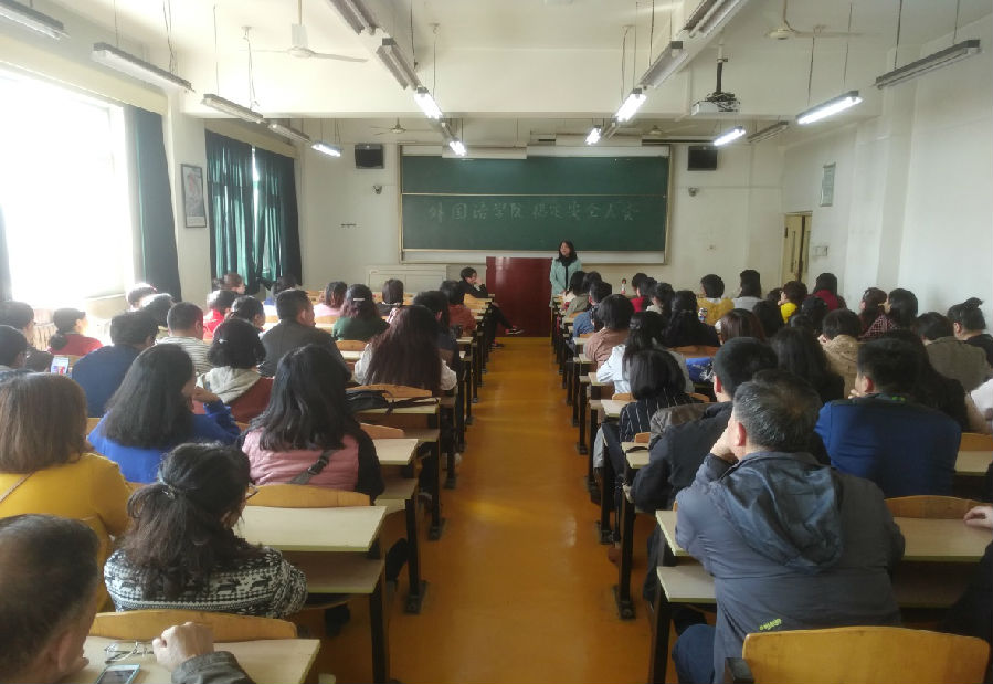 2018年10月26日,公司党委在雁塔校区二号教学楼1211#召开全院教师大会。公司党委书记廖敏带领全体教师一起认真学习了《中华人民共和国反恐怖主义法》。