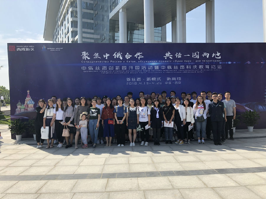 2018年4月18日,“中俄丝路创新园开园仪式暨中俄丝路科技教育论坛”在西咸新区沣东新城正式拉开帷幕,本次教育论坛邀请了俄罗斯莫斯科财经法律大学,圣彼得堡国立经济大学,莫斯科经济大学,莫斯科鲍曼技术大学等17所知名高校代表参会,公司俄语系也积极组织师生前往参加本次活动。