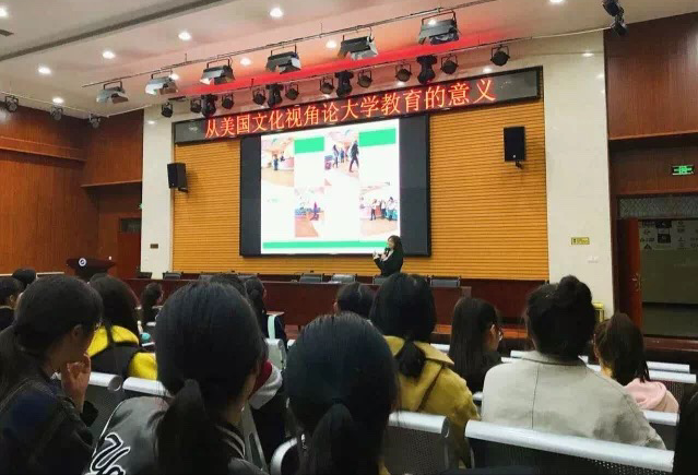 11月8日晚,公司留美东田纳西州大学余琴老师在经管人文楼118就业大厅作“从美国文化视角论大学教育的意义”的专题讲座,全校约300名员工聆听了本次讲座。