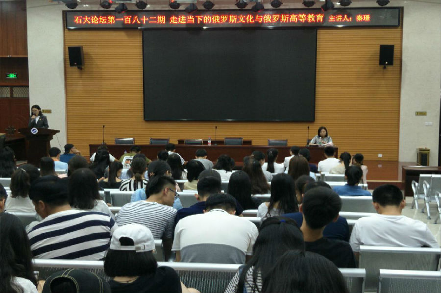 主讲人秦璟老师通过向同学们讲述自己在俄罗斯的工作,从外语学习、丝路沿线国家的国情和文化、国家形象等方面做了详细的讲述。讲座结束后,不少同学们主动地向老师提出了各种有关俄罗斯国家和教育相关的问题。