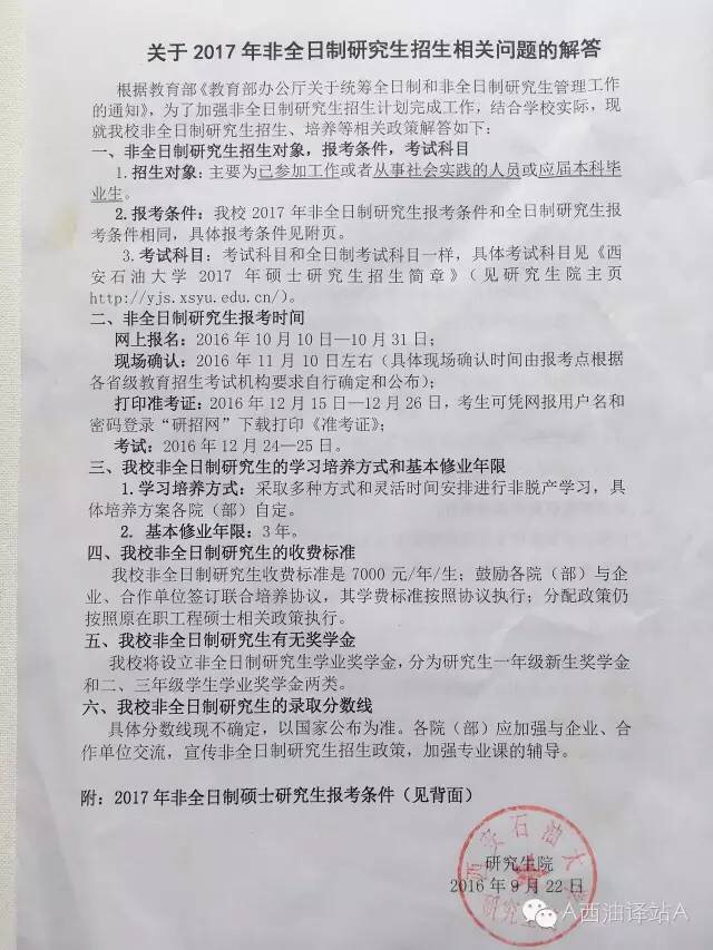 根据教育部9月14日颁发的《教育部办公厅关于统筹全日制和非全日制研究生管理工作的通知》,按照公司研究生招生安排,公司翻译硕士专业从2017年起同时招收全日制和非全日制研究生。非全日制研究生招生、培养等相关政策按照教育部要求及公司统一规定执行。