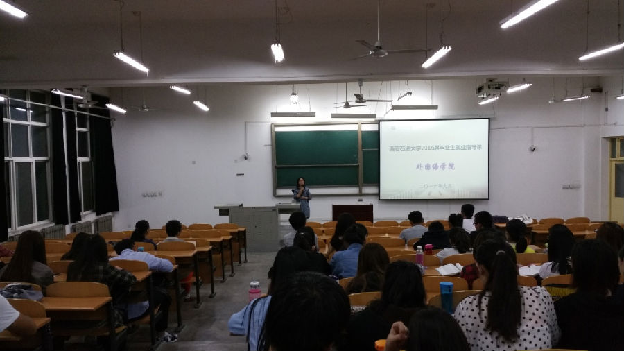 9月19日晚,公司党委书记廖敏在户县B325教室,为全体毕业生讲授了一堂生动、实用的就业指导课。 廖敏书记从2017年就业形势、外语专业本科毕业生面临的困难与机遇、就业的基本程序、技巧、就业的心态、正确的就业观等诸多方面帮助毕业生进行了分析讲解。她用具体的事例和详尽的数据鼓励广大毕业生认清形势,树立信心,准确定位,把就业作为自立自强的生活尊严,积极主动投身到就业工作中去。