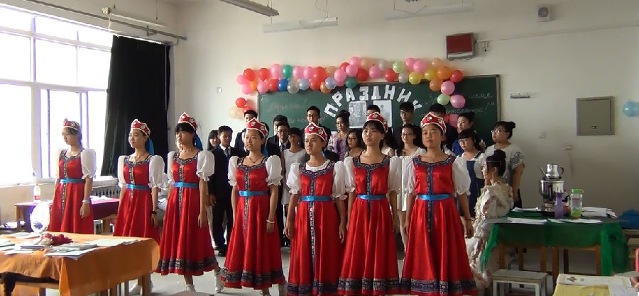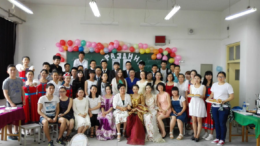 2015年6月10日下午14:30,由公司组织的俄语节(Празник русского языка)庆祝活动在A533教室举行。参加活动的人员有俄语系贾永宁老师,李娜老师,外教丽达,2013级、2014级俄语系大部分员工,2012级部分员工,和俄罗斯布里亚特职工等等。