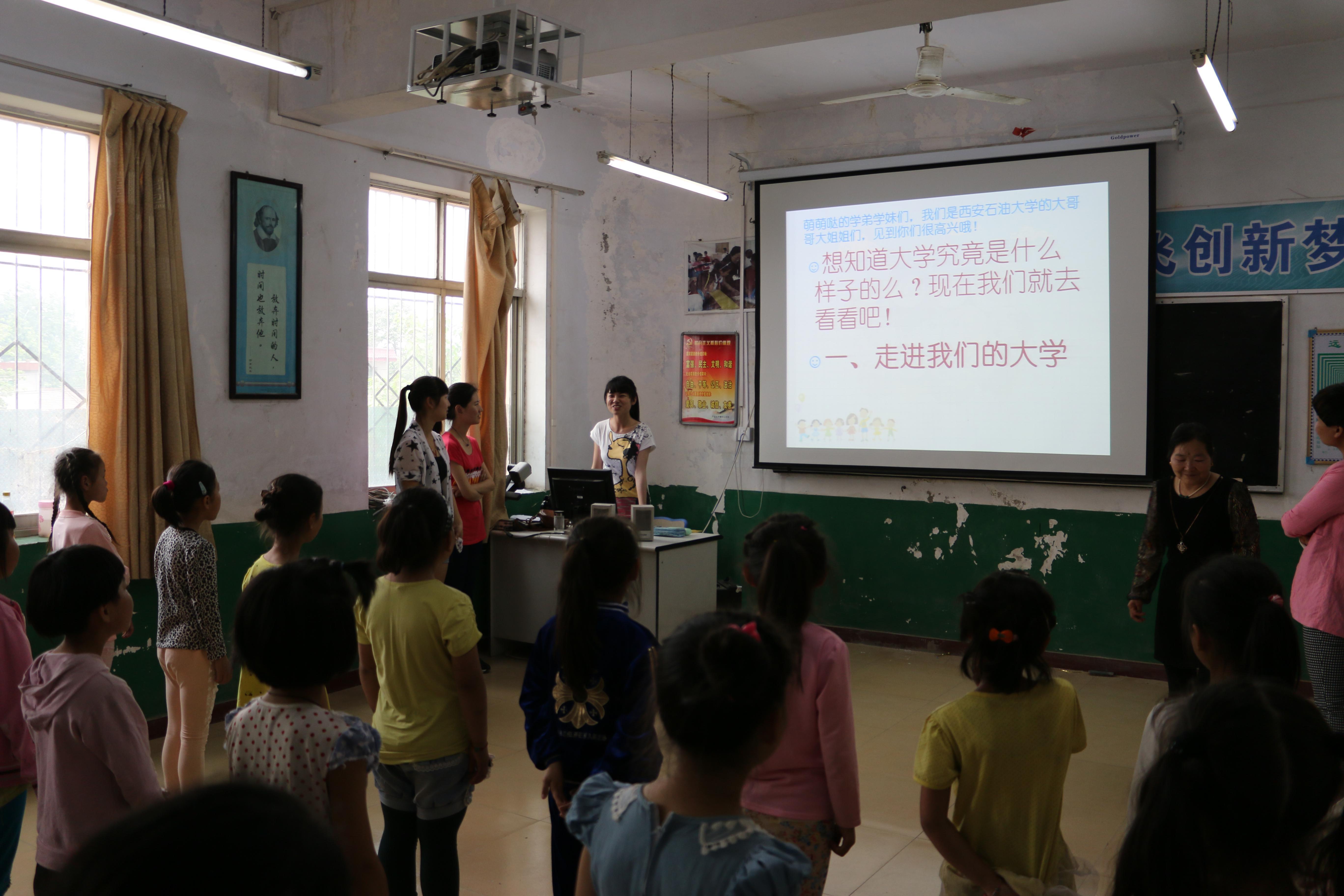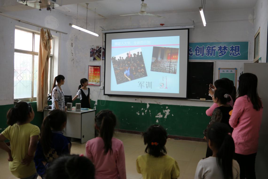 活动内容分篮球、舞蹈、音乐、书法四个小组,由各自组长带领孩子们进行活动。活动伊始,志愿者以PPT的形式向孩子们展示了大学的美好,增强了孩子们对大学向往、对科学文化知识的渴望。活动中,志愿者将各自的才艺在开心的活动中教给了孩子,孩子们也将快乐的笑容传达到这些大哥哥大姐姐。篮球组在操场上与小学篮球社成员交流切磋球技;书法组在教室里教给了孩子们书法的技艺;舞蹈组与音乐组在音乐室与孩子们一起唱歌跳舞,其乐融融。