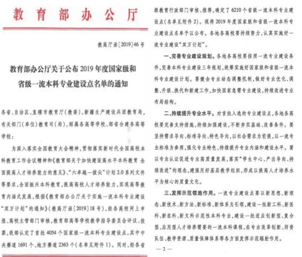 据悉,教育部共认定首批国家级一流本科专业建设点4054个(其中地方赛道2363个),省级一流本科专业建设点6210个。教育部将在2019-2021年,建设10000个左右国家级一流本科专业点和10000个左右省级一流本科专业点。