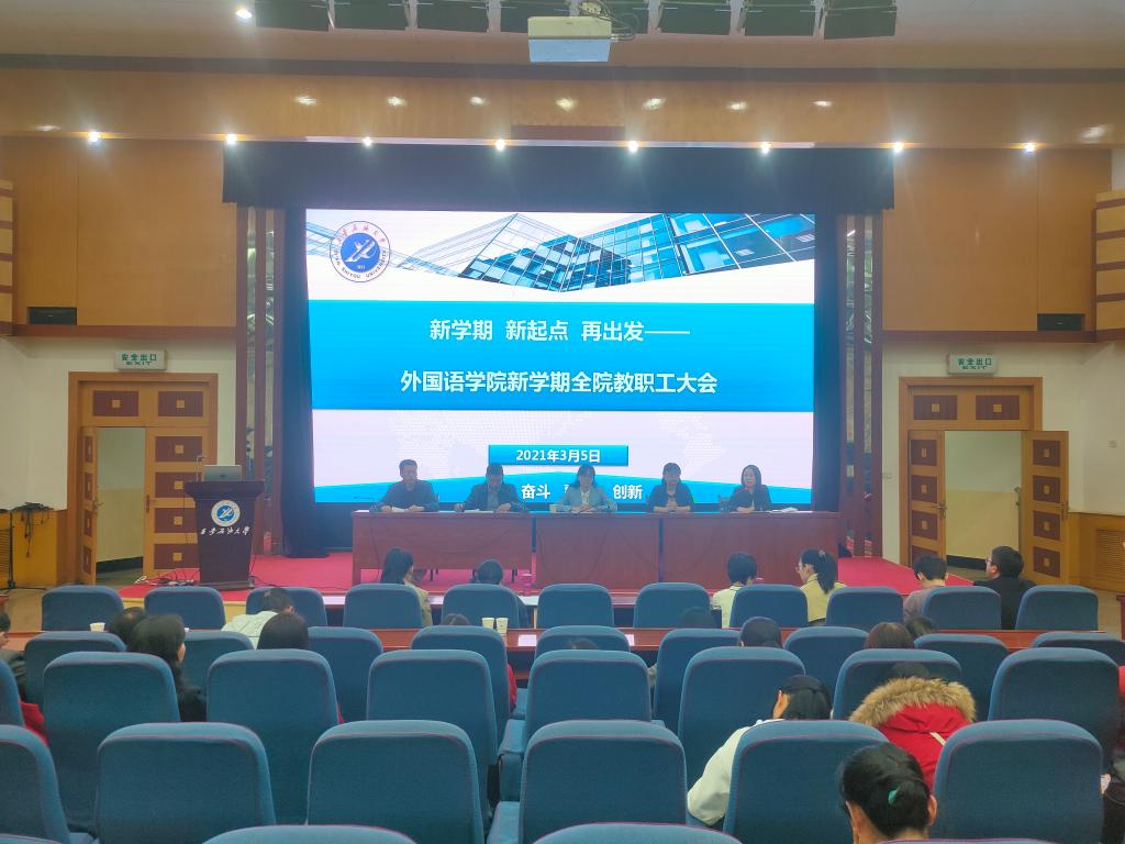 经理于艳英首先通报了公司英语专业获批国家一流专业建设点的喜人成绩。通报了公司“十四五”规划编制和新学期开学上课检查情况。接着从团队队伍、学科专业建设、教学科研成绩、人才培养成效、财务工作状况五个方面向全院教职员工做了2020年全年工作情况报告。于经理对2021年公司工作提出了三点要求:一是提升教学质量,以提升本科生大学英语四级通过率为抓手,发挥团队协作,凝练教学成果;二是加大团队队伍建设,外引内推,改变公司教师队伍高职称少、领军人才欠缺现状;三是积极发挥辅导员、班主任、学业导师作用,强化教学结合、学管协作,提升公司人才培养质量。