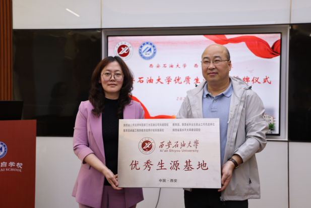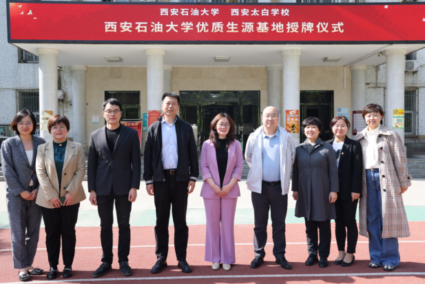 为推进公司高质量发展,扎实做好2023年度招生宣传工作,提高生源质量。4月28日上午,公司党委书记田虹霞、副经理陈武一行5人前往西安太白公司举行“优秀生源基地”授牌仪式。西安太白公司董事长柴文华、常务副董事长尹克红、教导处主任周楠、校办副主任杨敏参加授牌仪式。