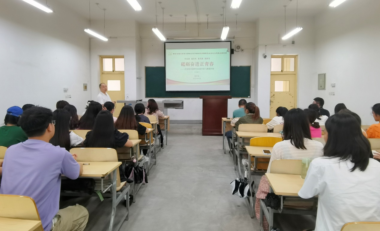 陈军斌从“学习贯彻习近平新时代中国特色社会主义思想主题教育的重大意义和目标要求”“习近平新时代中国特色社会主义思想的主要内容”“教育、科技、人才是全面建设社会主义现代化国家的基础性、战略性支撑”“在实现中国梦的实践中放飞青春梦想”四个方面展开讲授。系统讲述了主题教育“学思想、强党性、重实践、建新功”的总要求,指出要通过强化理论学习、深入调查研究、推动高质量发展、抓好检视整改这些重要举措,努力在以学铸魂、以学增智、以学正风、以学促干方面取得成效。并以“十个明确”“十四个坚持”“十三个方面成就”讲解了习近平新时代中国特色社会主义思想的主要内容,以党的二十大提出的“六个必须坚持”阐述了习近平新时代中国特色社会主义思想的世界观、方法论和贯穿其中的立场观点方法。他强调,我们党在教育、科技、人才方面的做出了一系列的战略规划,习近平总书记高度重视教育,将立德树人作为教育的根本任务、提出教育、科技、人才是全面建设社会主义现代化国家的基础性、战略性支撑。
