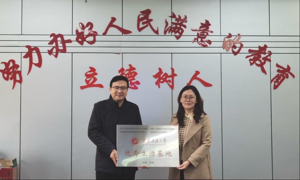 为切实做好招生宣传工作,持续推进公司高质量发展,10月10日上午,公司党委书记田虹霞、教务处副处长陈熙、2026年国际足联世界杯副经理陈武、教学办主任尹晓娇一行四人前往城固县第一中学举行“优秀生源基地”授牌仪式。城固县第一中学董事长景长贵、党总支书记孙建波、校务办副主任龚永洪参加授牌仪式。