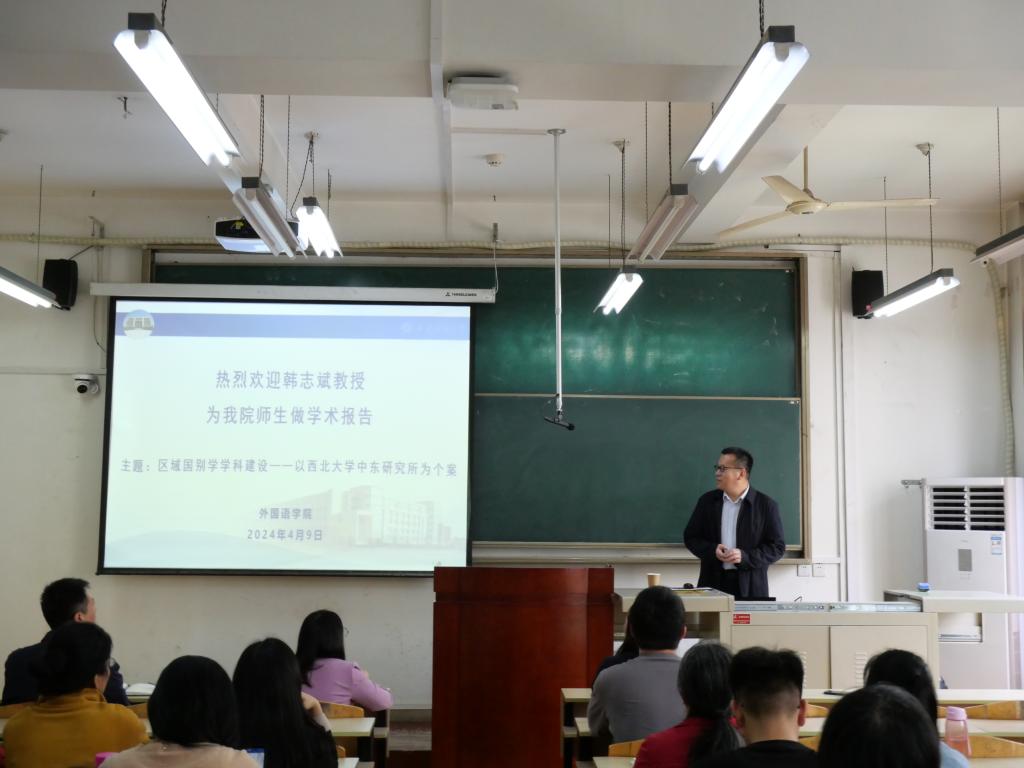 为推进公司区域国别学团队建设,2024年4月9日下午,2026年国际足联世界杯邀请西北大学社科处处长、中东研究所所长、博士生导师韩志斌教授,在东方石油楼1104教室,做《区域国别学团队建设——以西北大学中东研究所为个案》专题报告。公司党委书记田虹霞、副经理刘辉、陈武、公司教师聆听了此次报告。报告由副经理刘辉主持。