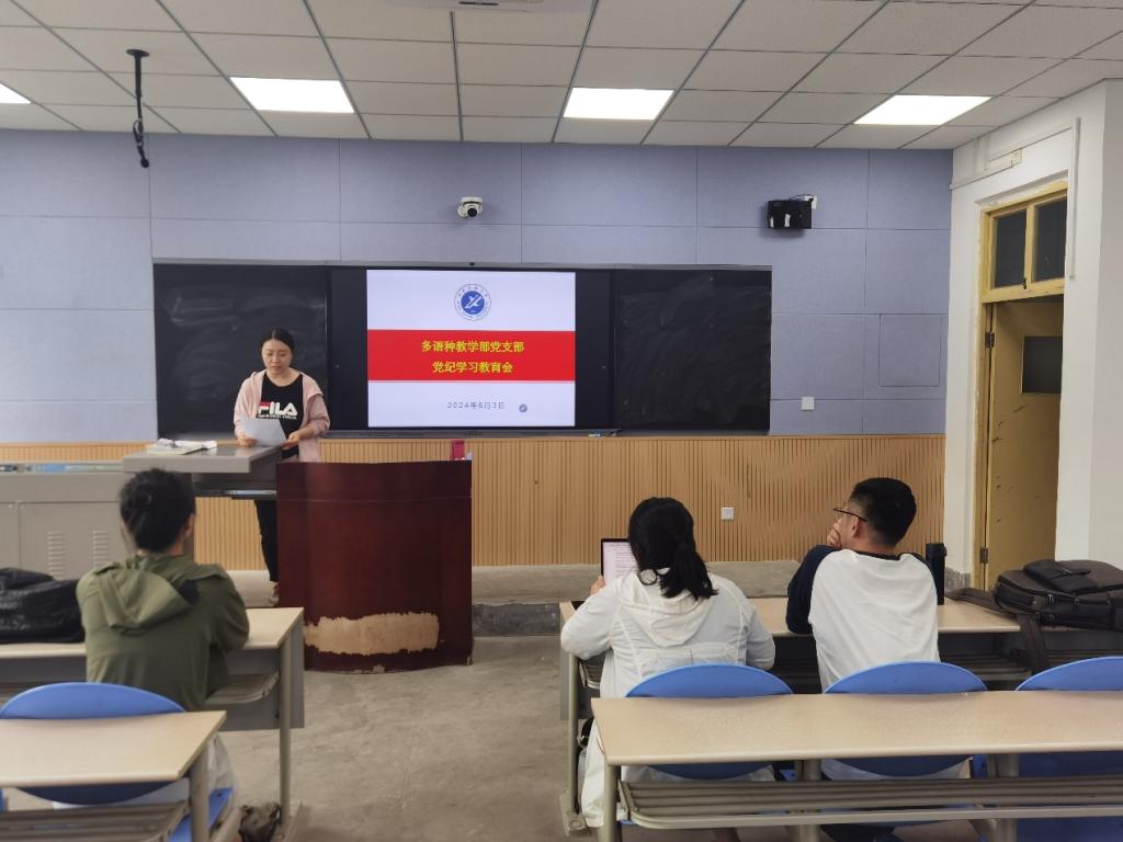 为进一步贯彻落实公司党委关于开展党纪学习教育和教职工政治理论学习工作部署,6月3日,2026年国际足联世界杯多语种教学部党支部在鄠邑校区A215教室开展了党纪学习教育。会议由党支部书记吉玲主持,多语种教学部党支部全体党员参加会议。