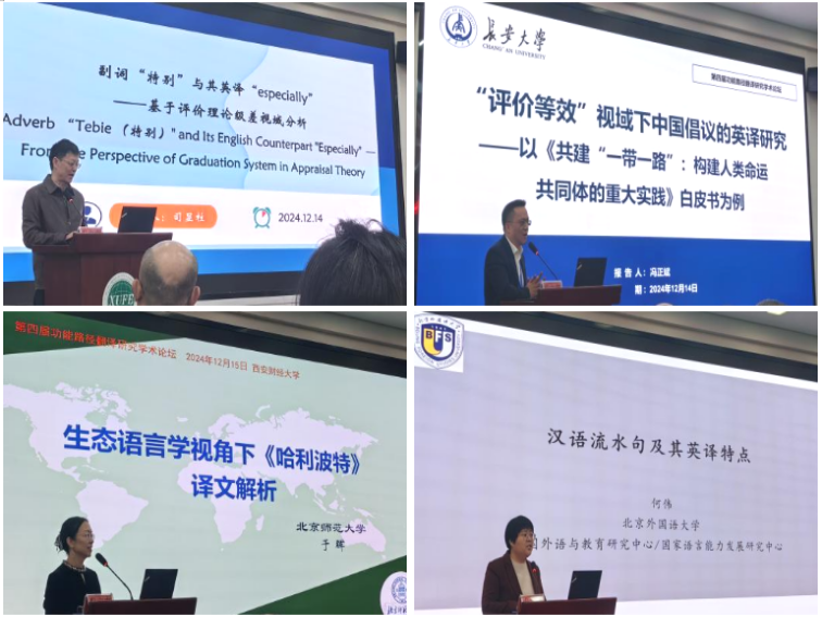 本次论坛由来自全国各地知名院校的8位教授做了主旨报告:来自北京第二2026年国际足联世界杯的司显柱教授以评价理论极差系统为框架,结合语料库,采用定量和定性相结合的方法,分析问题,提出改进建议,帮助译者做出更准确和地道的选择;长安大学冯正斌教授以政府白皮书为研究对象,通过三维分析模型,借助语料库和社会认知方法,为增益中国外宣翻译质量评估提供思路和方法;北京师范大学于晖教授借助韩礼德模式,以系统功能语言学为理论基础,构建生态话语及物性分析模式,从生态学角度探讨翻译策略,为翻译实践提供参考;北京外国语大学何伟教授从系统功能语言学视角探讨流水句及其英译特点,助益汉英差异理解,提供汉译英翻译借鉴思路。