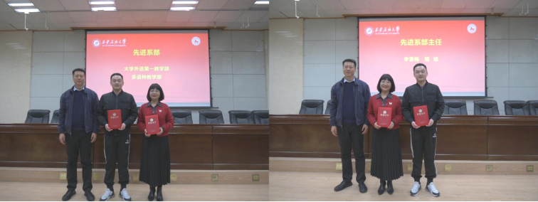 会上,公司党委副书记邱岭宣读了表彰决定,授予毕莹等32名教师“先进教师”荣誉称号,授予大学外语第一教学部等4个系部和党支部“先进集体”荣誉称号,同时授予李雪梅等4名教师“先进系部主任和党支部书记”荣誉称号。随后,公司党委书记张建高、副书记邱岭、副经理陈武及工会主席王文峰为获奖教师颁发了荣誉证书,并合影留念。