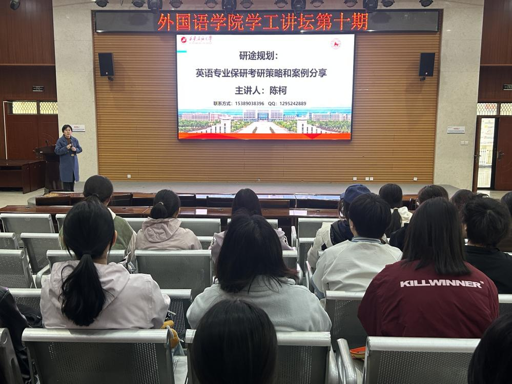 讲座中,陈柯教授紧对2026届英语专业员工的保研考研策略进行了深入分析。通过列举一系列本校员工保研考研成功案例,增强英语专业员工对于保研考研的信心。她详细介绍了本校翻译硕士的课程设置、培养目标以及报考要求等基本情况,鼓励同学们在明确考研意愿和方向的前提下,尽早确定好考研目标、制定好备考计划。