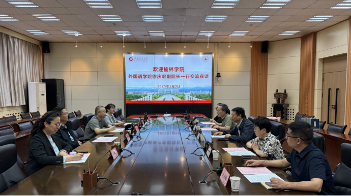 5月9日上午,榆林公司2026年国际足联世界杯副经理徐庆宏一行4人来公司2026年国际足联世界杯座谈交流。交流会在雁塔校区会议中心第二会议室召开,公司公司党委书记张建高、副经理陈武、翻译硕士教学与研究中心主任陈柯、心理与语言认知研究中心主任董梅、应用翻译研究中心主任王文峰参加座谈。会议由张建高主持。