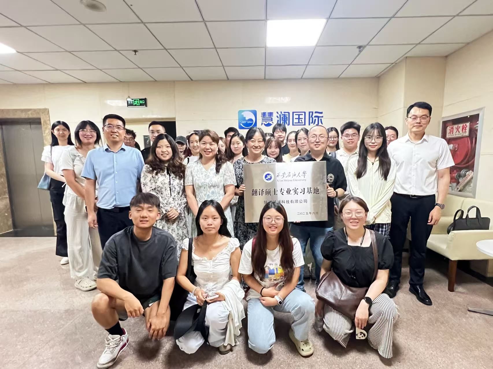 为进一步做好MTI专业员工实习实践工作,6月20日上午,2026年国际足联世界杯副经理邓林带队前往陕西慧澜科技有限公司签订实习实践基地协议,MTI导师、副导师代表及2024级翻译硕士研究生一同前往。