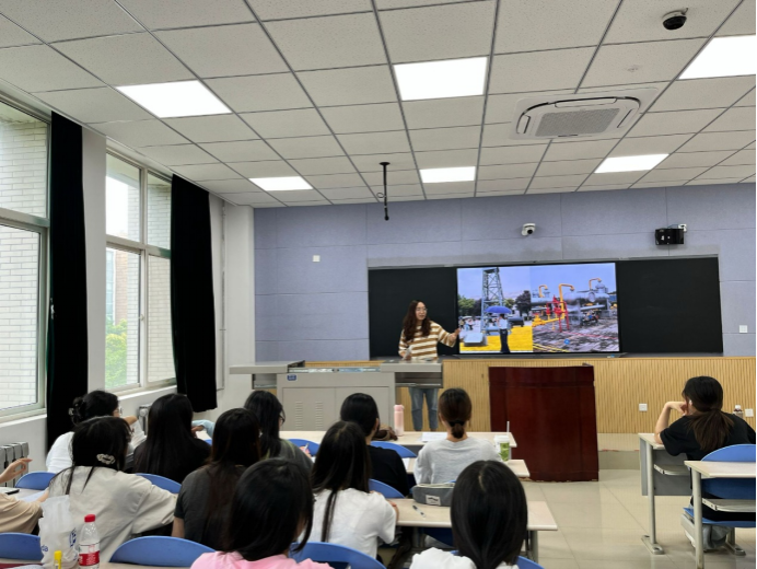 6月17日,全体员工走进鄠邑校区化学化工公司实验室。在采油钻井实训室、集输实训平台和地球科学科普教育地质实训平台,大家认真聆听讲解,对展示的石油开采、炼制、储运等多方面的先进技术模型表现出浓厚兴趣。翻译2402班陈琳同学表示:“这种‘专业知识+语言实践’的模式,让我们真切体会到翻译不仅是语言转换,更是行业知识的跨文化传递。”