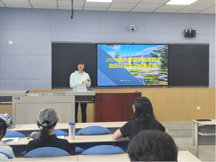 在成果汇报环节,2024级英语、翻译、俄语3个专业7个班级以双语调研报告、演讲、实习题材摄影成果展示等形式展示实习收获。展现外语能力与能源知识的融合成果,为实习画上圆满句号。各班级汇报既展现了油气勘探流程、压裂技术等行业知识的认知成果,也突出外语在技术文档翻译、国际合作沟通中的应用实践。各班班主任老师对员工将语言能力与能源行业深度结合的成果给予高度评价。