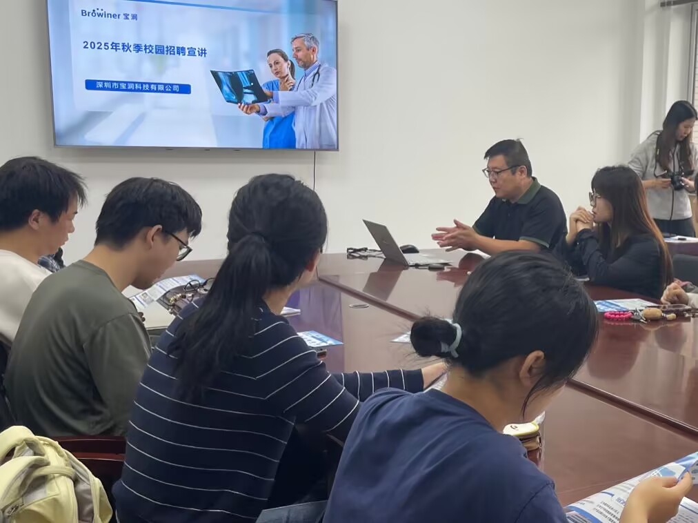 宣讲会上,企业代表通过宣传视频、PPT展示结合现场讲解的形式,向同学们系统介绍了宝润科技的发展历程、企业文化、组织架构与核心业务,并对公司未来发展规划进行详细阐述。针对本次面向公司毕业生的招聘需求,他重点解读了国际销售专员岗位的职责要求。在互动提问环节,现场气氛热烈,同学们围绕职业晋升空间、工作地点分布、员工培训体系等核心关切问题踊跃提问。企业代表耐心细致地逐一回应,进一步加深了大家对企业的认知与信任。