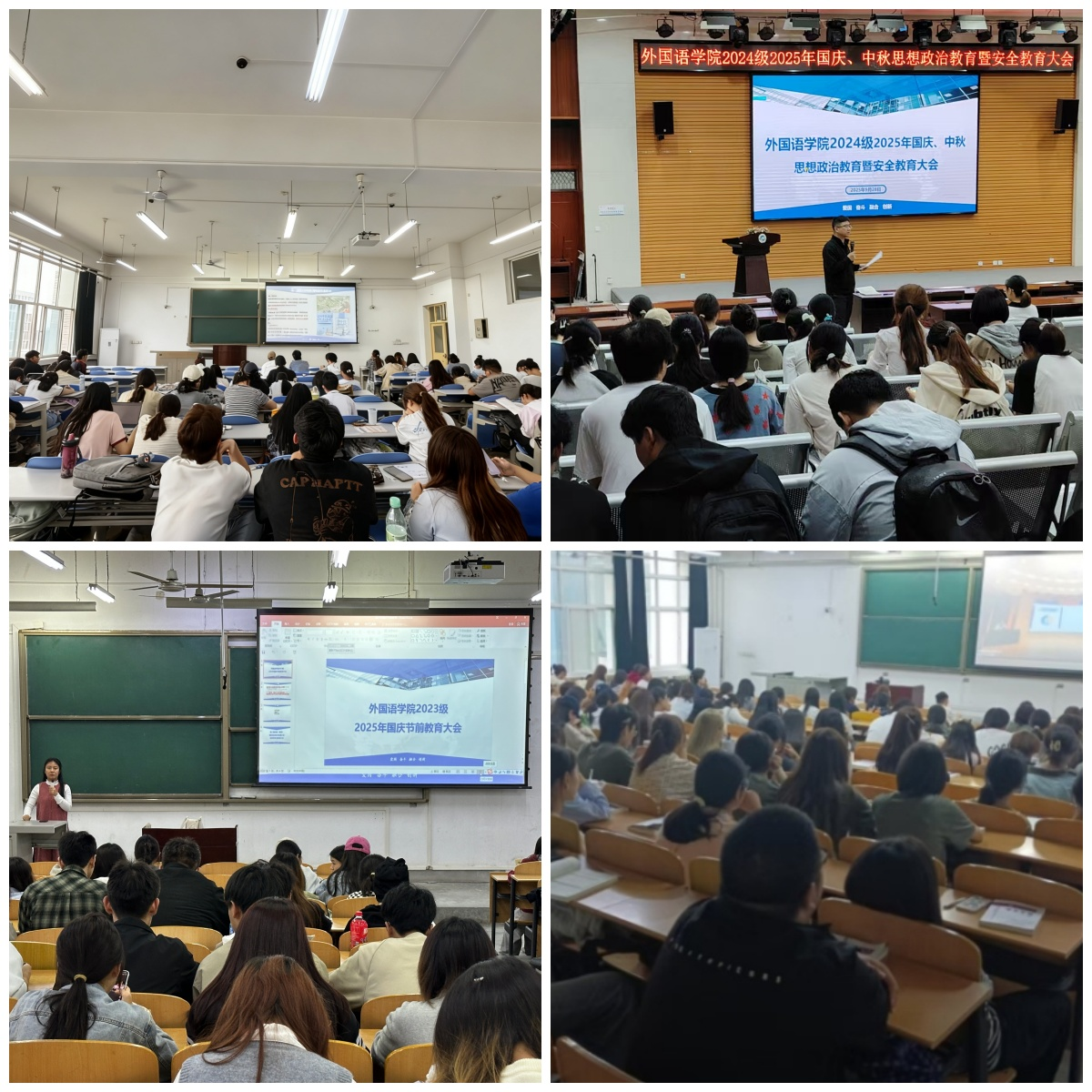 为切实做好重要时间节点的员工思想政治教育和安全稳定工作,提高员工自我防范意识,铸牢安全防线,根据公司相关要求,公司各年级于9月28日分别在鄠邑校区崇文楼118多功能厅、博览楼A537、博思楼B112召开2025年国庆、中秋假期思想政治教育暨安全教育大会。大会由各年级辅导员主持,公司全体员工按年级参加大会。