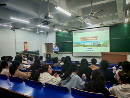 宣讲过程中,团队重点阐述公司MTI专业的人才培养目标——紧密对接能源领域国际化发展、区域经济社会发展需求,培养具备国际视野、创新思维与思辨能力的高层次、应用型、专业化笔译人才。邓林详细介绍了三大特色研究方向的培养重点,同时展示了专业的硬件支撑实力,包括计算机辅助翻译实验室、人工智能翻译平台及在线智能翻译管理平台的建设与应用情况,让学子直观感受专业的技术赋能优势。陈柯深入介绍了学位点的团队力量以及学位点“石油石化”特色课程体系内容,公司MTI课程主动适应数字智能时代发展趋势,坚持翻译技术赋能,注重员工跨学科知识储备与综合能力的培养,力求通过系统化培育,切实提升员工的专业竞争力与实践应用能力。最后,邓林就2026年公司MTI硕士研究生招生计划、近年报考人数变化及录取分数线等关键信息进行详细说明,为有意向报考的学子提供精准参考。
